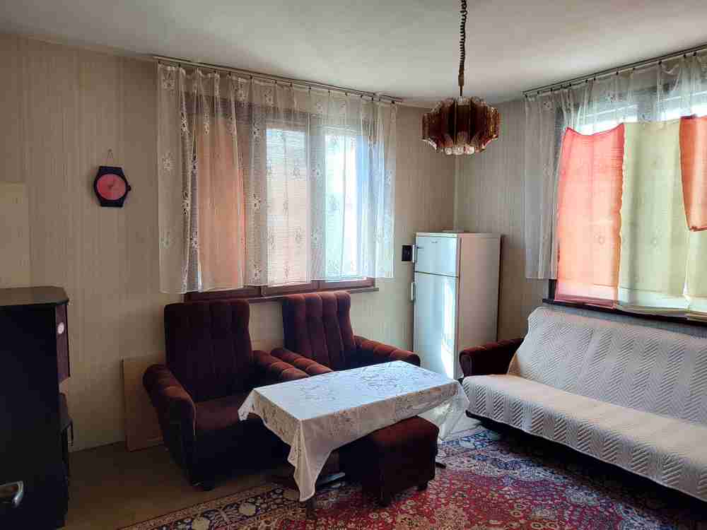Описание: Имоти Доверие-Консулт предлага на своите клиенти за продажба имот, разположен на първи етаж, заедно със сутерен от фамилна масивна къща, ведно с масивен гараж и идеална част от дворното място, който имот се намира в к-с Химик - в района на м-н Фреш и ОКС. Етажът е с площ около 65 кв.м, сутеренът съответно около 60 кв.м, а дворното място съставлява една втора идеална част от около 250 кв.м, заедно с построения масивен гараж в него, който е с площ 20 кв.м. Къщата е изградена с плоча между етажите и покрива, като последният е ремонтиран и в отлично състояние, без никакви течове. Разпределението в етажа е: кухня с трапезария, дневна с преходна спалня и излаз на остъклена тераса, сервизни помещения, а сутеренът има две стаи с преход, сервизни помещения и мазе. Жилището е запазено, но подлежи на реновиране от бъдещия му собственик. | |